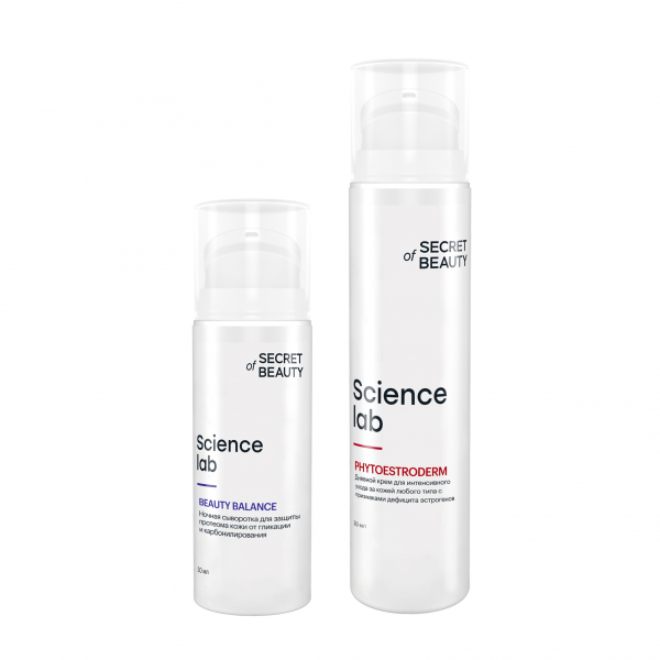 борьбы с дефицитом эстрогенов, гликацией и карбонилированием - ночная сыворотка "БЬЮТИ БАЛАНС" и дневной крем "ФИТОЭСТРОДЕРМ" , которые вошли в дуэт.
