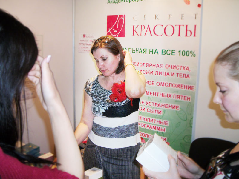 Получив от руководства Компании полномочия представлять продукцию и бизнес за пределами России, Вице-президент Ирина Литвинова презентовала на Выставке сухую косметику «Секрет Красоты», ответила на многочисленные вопросы заинтересовавшихся посетителей и рассказала о возможностях сотрудничества с Компанией.