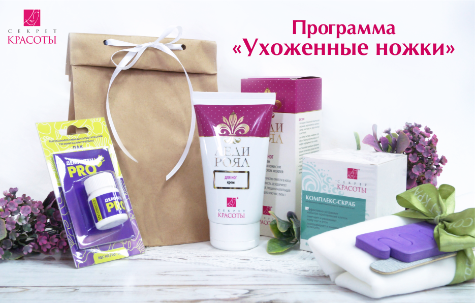 - идеально подобранные продукты Компании для ухода за ногами и новая, усовершенствованная формула крема Леди Роял «Для ног»;