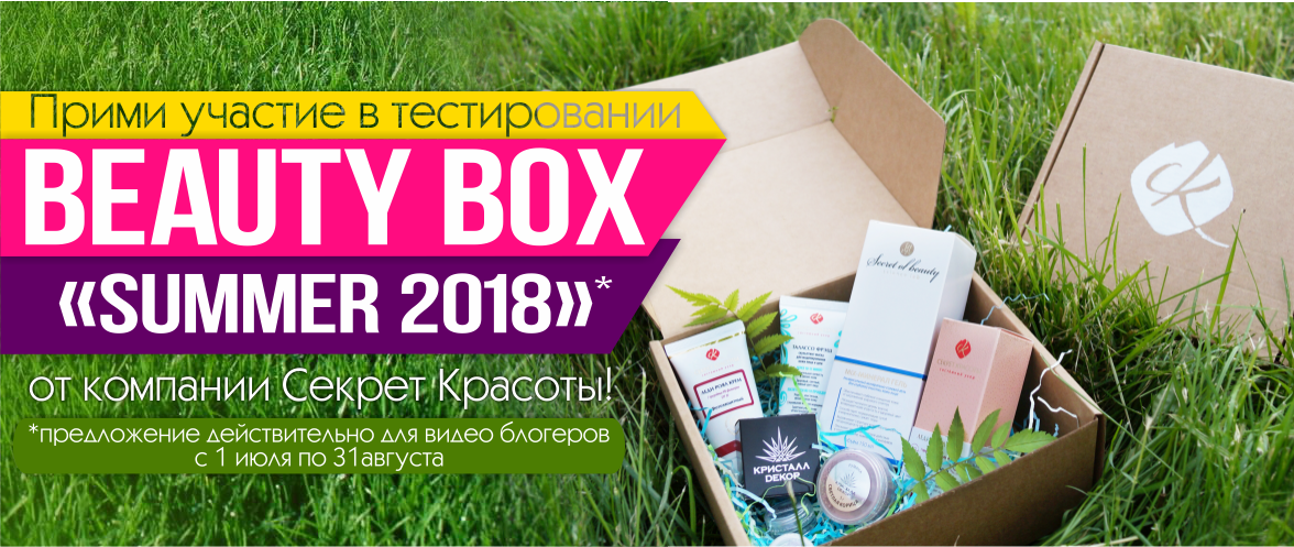 Компания «Секрет Красоты» приглашает бьюти-блогеров принять участие в проекте «Бьюти бокс - Summer 2018» и открыть для себя косметику «Секрет Красоты», а потом и рассказать о ней миру.