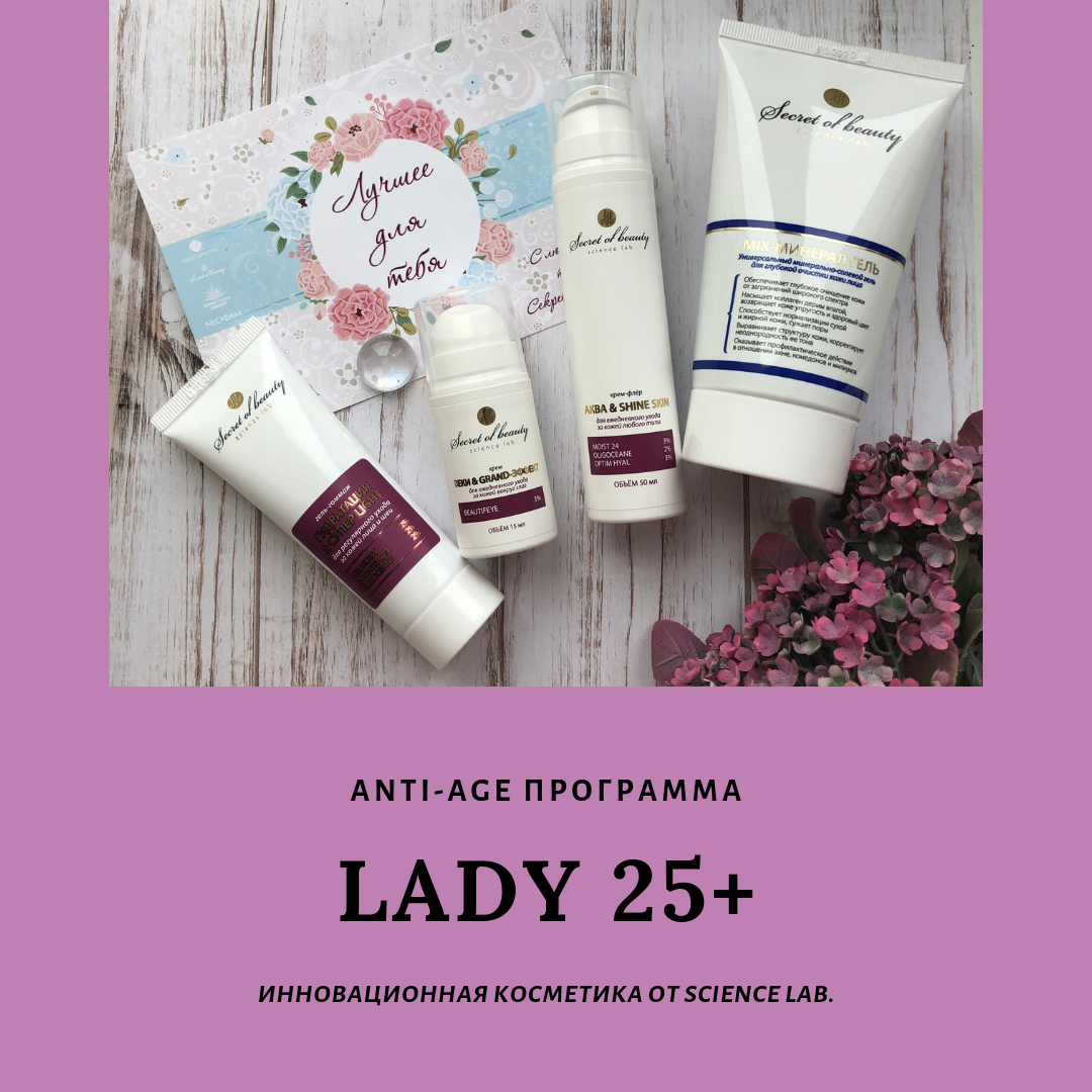 Science lab - LADY (25+) – для молодых женщин в возрасте от 25 лет и старше, которые столкнулись с первыми возрастными изменениями кожи, а так же для тех, кто понимает важность поддержания и профилактического ухода за кожей лица в условиях современной, наполненной стрессами жизни.