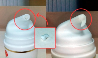 Для исключения попадания воздуха вовнутрь упаковки и как следствие, предупреждения химической реакции препарата с кислородом, все диспенсеры комплектуются клапанами, которые требуется вставить в отверстие диспенсера после каждого применения. Клапаны надежно фиксируются простым поворотом на 90 градусов. Вставлять клапан рекомендуется хвостиком вниз, после чего закрепить поворотом.